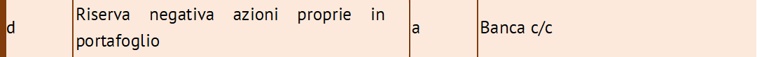 In sede di apertura dell’esercizio 2016, le azioni proprie risultanti dal bilancio 2015 andranno pertanto stornate dall’attivo patrimoniale costituendo e iscrivendo in contropartita la Riserva negativa per azioni proprie in portafoglio.