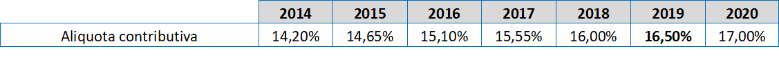 Le aliquote della contribuzione per agenti operanti in forma di impresa individuale o società di persone previste per l’anno 2019 seguono il graduale aumento evidenziato nella tabella di seguito proposta: