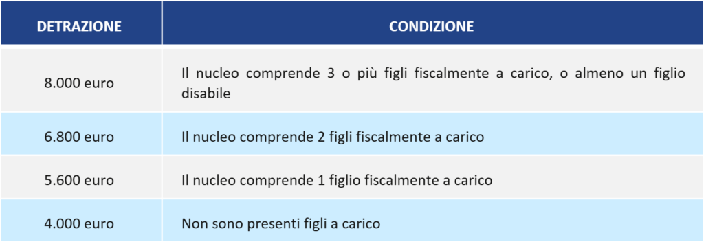 - 8.000 euro, nell’ipotesi di reddito complessivo superiore a 100.000 euro.