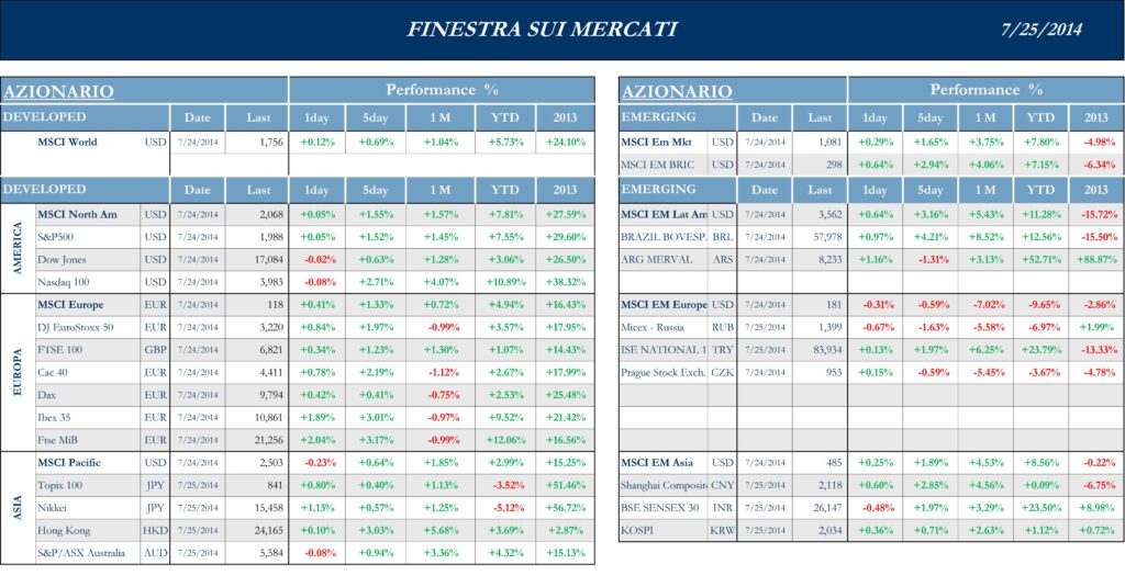 La settimana finanziaria