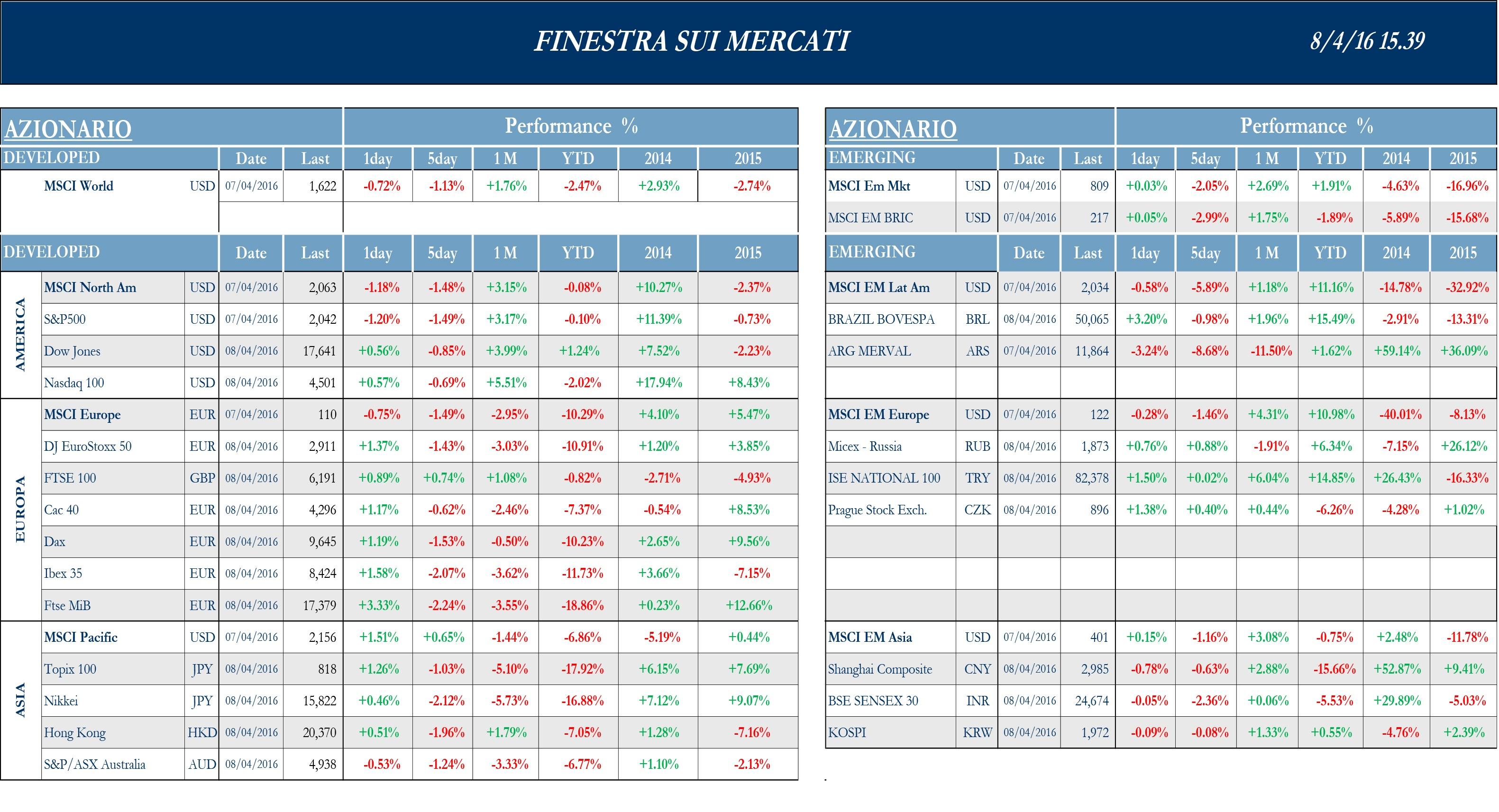 Andamento dei mercati