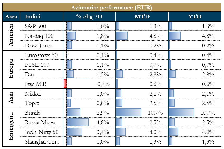 Europa: continua la febbre M&A nel settore bancario e assicurativo, con il newsflow sulle dinamiche intorno a Generali.