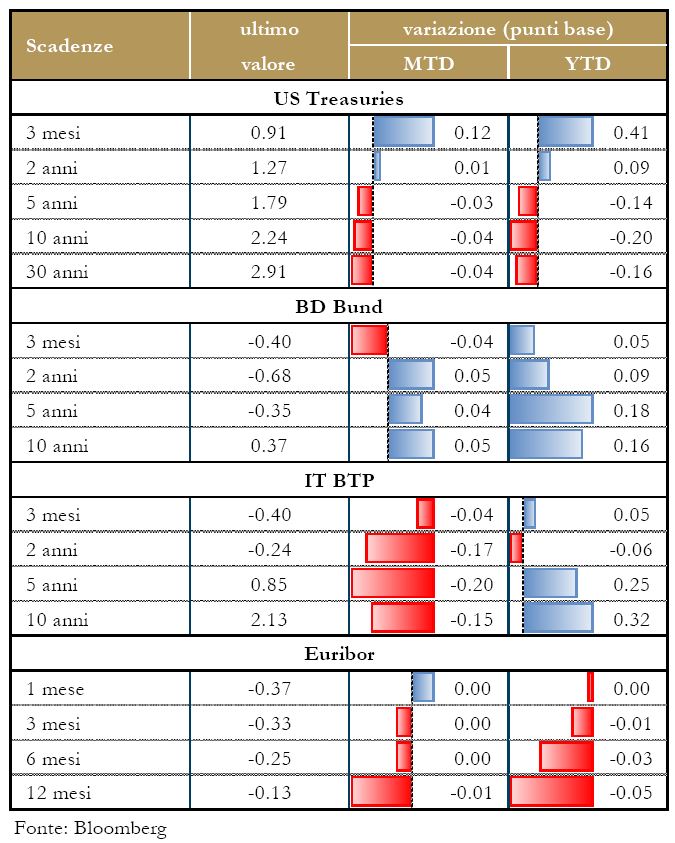 EUROPA: Finanziari: Unicredit ha collocato una nuova obbligazione Additional Tier1, con call a sei anni, da €1.25mld a fronte di ordini per oltre €2.8mld, sfruttando il miglioramento della percezione di mercato sulla banca dopo l’aumento di capitale da €13mld. Sempre parlando di Unicredit, Central Bank of Libya ha diluito la sua quota allo 0.82%, mentre Leonardo Del Vecchio, tramite Delfin, e Allianz sono sostanzialmente stabili rispettivamente all’1.93% e all’1.01%. I fondi Dodge e Cox erano presenti con il 3.44% in assemblea. Il gruppo Fideuram-Intesa Sanpaolo Private Banking ha chiuso il Q1 con un utile netto consolidato di €223mln (+5%) e masse amministrate per €202.9mld (+2%). Banco BPM ha in rampa di lancio una cartolarizzazione di sofferenze bancarie con la garanzia pubblica e si avvia al rush finale dell’operazione Project Rainbow. Inoltre, il nuovo piano di MPS è quasi concluso e la settimana prossima dovrebbe essere quella buona per il via libera della struttura tecnica della Dg Comp. Arriverà poi, entro oggi, l’offerta non vincolante di Atlante per la maggioranza delle tranche junior e mezzanine della cartolarizzazione sui €29mld di npl; Il fondo potrebbe accompagnarsi a Fonspa e Fortress. L’emissione sarà del tipo senior ammontare atteso fino a €300mln. Le obbligazioni saranno riservate a investitori qualificati. Infine, GIC, fondo sovrano di Singapore, che aveva investito in UBS durante la crisi finanziaria 2008, ha comunicato di aver tagliato la propria partecipazione dal 5.1% al 2.7% e il governo britannico sta per vendere la propria partecipazione (43.4%) in Lloyds così che la banca sia il primo gruppo dalla crisi a liberarsi dalla proprietà dello stato in un passo simbolico di recupero del settore. Energy: Iren ha completato a un prezzo di €1.98 per azione il collocamento di circa 26mln di azioni ordinarie (2.0% del capitale) realizzato attraverso un ABB da parte del Comune di Reggio Emilia e di STT Holding; inoltre il CdA ha deliberato la disponibilità a finanziarie la controllata indiretta Trattamento Rifiuti Metropolitani nel rimborso anticipato volontario del project financing da 413mln con debito residuo a fine giugno 2017 di 303.5mln. A2A ha comunicato di essere interessata agli asset di Gas Natural in Italia, se venissero messi in vendita; ha poi confermato i vertici per altri tre anni, fino al bilancio 2019, con l’AD Luca Valerio Camerano e il presidente Giovanni Valotti. Infine, CDP perfezionerà la cessione dell’1.12% di Snam e dello 0.97% di Italgas a CDP Reti per un corrispettivo totale di €187.6mln. Telco: Fininvest ha acquistato l’1.27% del capitale di Mediaset salendo al 41.09% dei diritti di voto e al 39.53% del capitale sociale totale. Passando invece a Telecom Italia, Vivendi ha offerto la vendita di una controllata del gruppo italiano, Persidera, ai regolatori UE per ottenere il via libera al controllo dell’ex incumbent. Inoltre, secondo Il Sole 24 Ore, Uefa avrebbe contattato Mediaset, Sky, Discovery e Rai sulla gara dei diritti tv in Italia per Champions League ed Europa League 2018-2021, mentre fra le telco sarebbe stata contattata Telecom. Cairo Communication chiude il Q1 con una perdita di 3.1mln considerando l’intero periodo e un utile di 0.3mln da 1.7mln a perimetro costante. Infine, la prossima assemblea degli azionisti de Il Sole 24 Ore voterà l’abolizione del tetto del 2% sul possesso azionario per rendere più appetibile l’aumento di capitale da almeno €50mln di cui il gruppo editoriale ha bisogno. Tecnologici: Hydra, azionista di maggioranza di Datalogic, ha avviato la cessione di massime 2,922,323 azioni, 5% del capitale della società, attraverso una procedura di ABB riservata a investitori istituzionali. I risultati trimestrali di Ubisoft si sono rivelati nettamente inferiori alle attese, col conseguente calo delle azioni che ha riaccesso i rumors su una possibile acquisizione da parte di Vivendi, che potrebbe essere facilitata nel convincere le minorities. Industriali: Buzzi ha chiuso il Q1 con un fatturato consolidato in crescita dell’8.9% a 588.5mln; per l’intero anno conferma la guidance di un Mol ricorrente consolidato in crescita tra il 5% e il 10%. CNH ha collocato un’obbligazione da €500mln con scadenza 5 anni, prezzo di emissione pari al 99.335% del valore nominale e cedola fissa del 1.375%. Occhiali: Luxottica ha deciso di avviare la procedura di delisting dal NYSE delle American Depositary Shares rappresentate dagli American Depositary Receipts e di richiedere la cessazione volontaria della registrazione presso la SEC e dei connessi obblighi informativi. Food: Lidl è in procinto di aprire il primo set di 20 negozi negli Stati Uniti; i primi negozi saranno aperti in Virginia, Nord e Sud Carolina e l’idea è di arrivare a 80 negozi entro la fine del primo anno. Tale ingresso aumenterà la già intensa guerra di prezzo in atto tra le grandi catene alimentari americane. Danone ha dichiarato di avere investito nelle sinergie derivanti dall’acquisizione di WhiteWave e su un piano di taglio dei costi da €1mld così da aumentare il margine operativo sopra il 16% entro il 2020. Settore auto: Il ministro dello sviluppo economico Calenda chiede chiarezza alla Commissione UE, che ha avviato una procedura di infrazione a carico dell’Italia per i test sulle emissioni di FCA, decisione che sta pesando sull’andamento del titolo del gruppo automobilistico. M&A: Atlantia ha promosso un’offerta su tutte le azioni Abertis, un’operazione che punta a essere amichevole e valorizza il gruppo spagnolo oltre €16.3mld con l’obiettivo di creare il principale operatore di autostrade al mondo. Shanghai Pharmaceutical Holding ha informato di essere interessata a un deal con Stada Arzneimittel; tale mossa metterà SPH in competizione con Bain e Civen che hanno fatto un’offerta congiunta di $6mld..