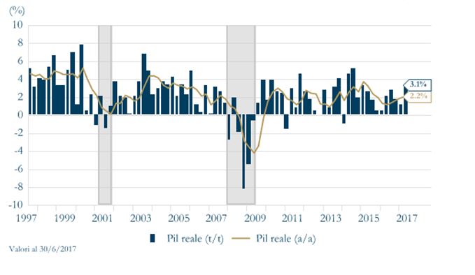 In realtà, l’equilibrio tra sconti fiscali e bilancio federale è ancora da trovare e vi è il rischio che la nuova legge fiscale faccia aumentare il deficit. Ad esempio, le prime stime mostrano che il costo della riduzione della aliquota societaria al 20% per dieci anni sia circa 1 trilione di dollari, ma nella proposta vi sono ancora pochi dettagli su come l’amministrazione Trump intenda coprire questo costo. E’ vero che il rendimento dei titoli governativi statunitensi al 2.3% permette di indebitarsi per investire nella crescita, ma in presenza di un debito alto un’espansione permanente dei disavanzi risulta rischiosa. Il GOP guarda ad un piano fiscale che aggiunga 1.5 trilioni di dollari nei prossimi 10 anni, e che porti il PIL reale degli Stati Uniti a crescere al 3% a/a, ma il comitato per un bilancio federale responsabile ritiene che un taglio fiscale di 1,5 trilioni possa spingere il debito pubblico al 100% del PIL in un decennio (dall’attuale 77%).