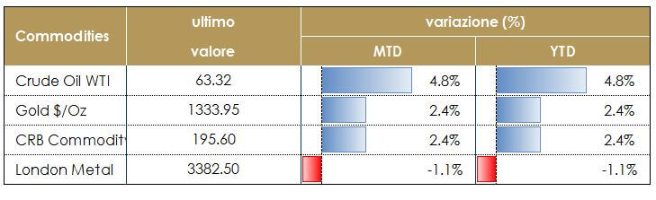 Suggeriamo un sovrappeso degli strumenti più sensibili alla crescita. Restiamo positivi su tutto il comparto azionario data la solidità del ciclo economico e, in particolare, esprimiamo una view positiva sull’azionario Area Euro e Giappone.