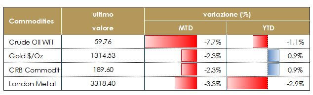 Seguendo gli altri mercati finanziari, i prezzi delle materie prime hanno subito un netto calo nell’ultima settimana. Il sell-off nel mercato delle materie prime, tuttavia, è stata inferiore a quello verificatosi nei mercati azionari.