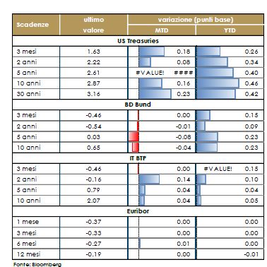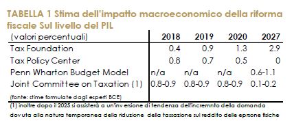 mercati una view più ottimista sulla crescita economica e indicano maggiori probabilità che l’inflazione US nei prossimi mesi torni al target del 2%, aumentando la probabilità di procedere sulla traiettoria di graduali rialzi del corridoio obiettivo per il tasso sui federal fund Nei verbali si legge che la maggior parte dei membri del FOMC ha fatto notare che i dati economici rilasciati recentemente suggeriscono un contesto economico più solido di quanto previsto a dicembre, aggiungendo che glieffetti della revisione fiscale sulla spesa dei consumatori e delle imprese potrebbero essere nel breve termine maggiori di quanto si pensasse in precedenza. La tabella 1 sintetizza l’impattomacroeconomico della riforma fiscale sul PIL. Nei verbali la descrizione dei rischi è rimasta invariata (“approssimativamente bilanciati”), anche se qualche membro del FOMC ha sottolineato l’esistenza di rischi al rialzo per il sentiero di crescita. Resta elevata l’attenzione del FOMC all’inflazione: la maggioranza del FOMC vede l’inflazione in aumento nel 2018 e stabilizzarsi attorno al 2%. Infine i dati settimanali sul mercato del lavoro mostrano che le nuove richieste di sussidi di disoccupazione per la terza settimana di febbraio hanno registrato un lieve calo a 222 mila unità contro il consenso che le vedeva invariate dalle precedenti 230 mila. Sorpresa positiva anche dalle richieste continuative di sussidi di disoccupazione per la seconda settimana di febbraio che sono scese a 1875 mila unità (1935 consenso) dalle precedenti 1948 mila.