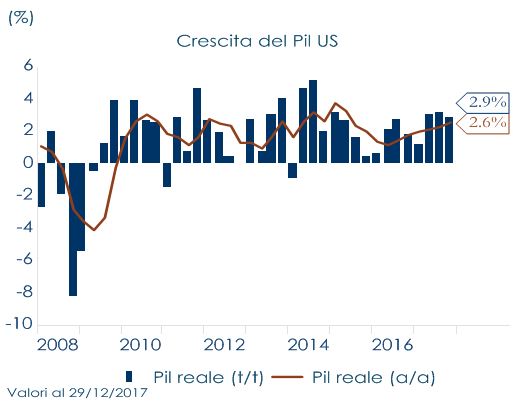 STATI UNITI: la crescita statunitense ha chiuso il 2017 a un ritmo più forte delle attese