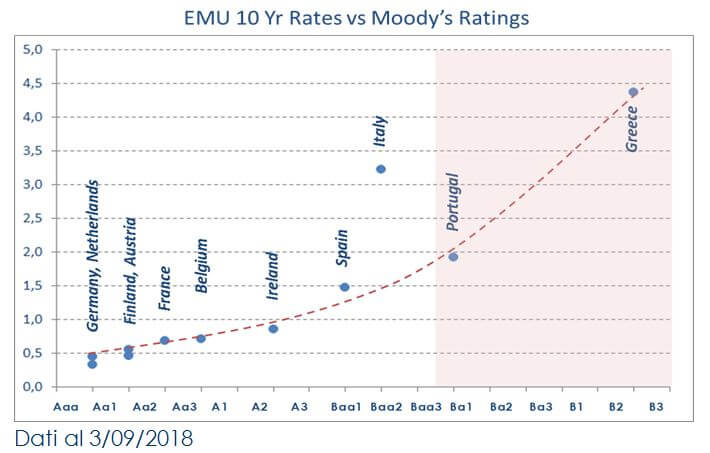 | Il Governo Italiano dovrà presentare entro il 27 settembre la Nota di Aggiornamento al Documento di Economia e Finanza (DEF) e definire il nuovo quadro programmatico. La bassa crescita potenziale dell’economia Italiana riduce i margini di operatività del governo Italiano e rende più incerte le stime sul deficit e debito atteso. Le future misure di governo sono ancora incerte ma quelle previste dal programma di governo implicherebbero, se implementate nella loro totalità, un marcato aumento del deficit previsto nel 2019. Per questo nei mesi estivi si è generata una situazione di forte incertezza sulle potenziali conseguenze delle future scelte dell’esecutivo. Questa incertezza ha comportato alcuni costi economici. In primo luogo, i mercati finanziari hanno iniziato a prezzare un rischio di ridenominazione e di insolvenza del debito, portando il differenziale di rendimento trai titoli governativi italiani e tedeschi sulla scadenza a 10 anni attorno ai 300pb e le quotazioni dei titoli italiani ad incorporare un rating più basso di quello attuale, mentre gli investimenti azionari, dopo il brillante inizio anno, hanno perso un 17% dai massimi, tornando ad essere uno dei peggiori listini europei. Inoltre, l’incertezza ha comportato una perdita di fiducia consistente da parte delle imprese manifatturiere. L’indice PMI manifatturiero per il mese di agosto si è attestato a 50,1, poco sopra la soglia che separa le aspettative di espansione da quelle di contrazione del settore. E’ facile prevedere, sulla base di questi numeri, che questa debolezza della fiducia delle imprese si tradurrà in una minor crescita della produzione industriale e in un PIL di T3 più debole (data di pubblicazione 30/10/2018).Le agenzie di rating Moody’s e S&P stanno attendendo la pubblicazione della Nota di Aggiornamento al Documento di Economia e Finanza (DEF) per rivedere il rating e outlook sull’Italia (Moody’s e S&P pubblicheranno il loro outlook il 26/10). C’è il rischio che vengano soddisfatti i criteri per declassare il debito sovrano al livello più basso dell’investment grade (una tendenza al ribasso del debito visibile e/o riforme strutturali). Un eventuale declassamento di un notch non rappresenterebbe una minaccia immediata di esclusione dei BTP dagli indici obbligazionari (e quindi la ponderazione in molti fondi obbligazionari), né rischierebbe di minacciare nell’immediato l’idoneità dei BTP come garanzia per le operazioni della BCE per gli acquisti di attività. Tuttavia, il declassamento del rating peserebbe chiaramente sul sentiment del mercato nei confronti dei titoli di stato italiani e, in tale contesto, non è possibile escludere il riemergere di spirali negative sul debito pubblico italiano. Altri costi potrebbero materializzarsi per l’economia italiana qualora l’aumento dell’incertezza politica e dello spread dovesse divenire permanente: in primo luogo, aumenterebbe l’onere per interessi, seppur più lentamente di quanto sarebbe avvenuto in passato, grazie alla politica attuata dal MEF durante il periodo di Quantitative Easing (allungamento della vita residua del debito), che ha portato la durata media del debito a 6.9 anni. In secondo luogo, aumenterebbe il costo del funding per le banche, con riflessi sul risparmio ma anche sul costo dei prestiti al settore privato, traducendosi in un aumento del costo e della selettività del credito a famiglie e imprese. Ciò potrebbe condizionare negativamente le attese di famiglie (meno consumi e più risparmio precauzionale) e imprese (blocco del riavvio del ciclo degli investimenti, più assunzioni con contratti a termine) instaurando una spirale negativa sulla crescita economica. Le ultime lending survey BCE e Banca d’Italia sulle condizioni del mercato del credito in Italia non evidenziano segnali di deterioramento ma incorporano i dati fino a fine giugno. Sarà necessario attendere la pubblicazione del nuovo report. Infine, data la bassa crescita potenziale dell’Italia una rinnovata incertezza politica esporrebbe il paese al rischio soffrire più degli altri paesi europei, in caso di una correzione della congiuntura globale. |