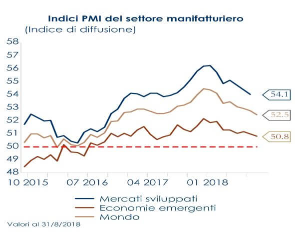 - Il rallentamento dei PMI manifatturieri degli ultimi mesi lascia prevedere un rallentamento dell’attività manifatturiera nei prossimi mesi