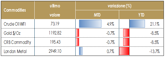 Notiamo, infine, come si mantengano in prossimità del massimo degli ultimi quattro anni i derivati sul greggio, in vista delle nuove sanzioni USA che colpiranno le esportazioni iraniane a partire da novembre, nonostante le politiche protezionistiche di USA e Cina possano incidere sulla domanda globale.