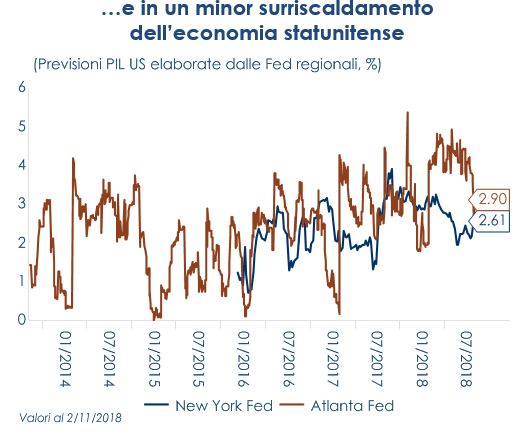 In sintesi, l’esito elettorale non modifica l’evoluzione nel breve periodo dell’economia statunitense ma ci porta ad aspettarci che la politica fiscale muti gradualmente da espansiva a neutrale, confermando una prospettiva di rallentamento graduale della crescita nei prossimi trimestri, in un contesto dove la Fed continuerà ad aumentare gradualmente il costo del denaro spostandosi anch’essa in territorio neutrale.