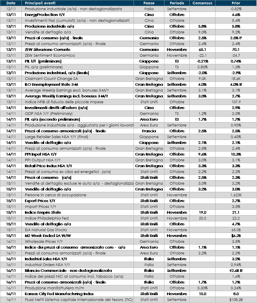 - Europa: l’attenzione sarà rivolta alla pubblicazione del PIL tedesco in T3