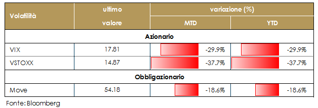 Continua la moderazione delle volatilità implicite. |