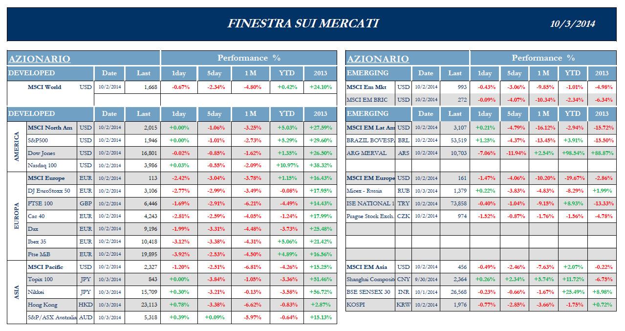 MSCI -3.04%, EuroStoxx50 -3.0%, FtseMib -2.53%.