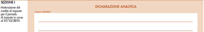 - cinque sezioni (una per ogni periodo di maturazione del credito indebitamente compensato) in cui indicare i dati di interesse e la relativa “dichiarazione analitica” su pagina liberamente editabile, ai fini della determinazione degli importi per il riversamento spontaneo;