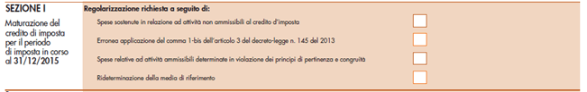 I riquadri sopra indicati devono essere compilati esclusivamente nel caso in cui oggetto del riversamento spontaneo sia un credito d’imposta R&S: