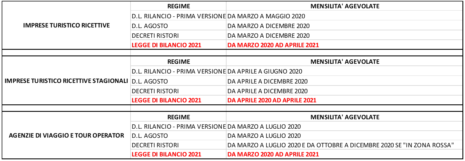 La Legge di Bilancio 2021 ha infatti riformulato l’ultimo periodo dell’articolo 28, comma 5, D.L. 34/2020, come segue: “Per le imprese turistico-ricettive, le agenzie di viaggio e i tour operator, il credito d’imposta spetta fino al 30 aprile 2021”. Nella previgente versione si faceva riferimento al 31 dicembre 2020 e non venivano annoverate le attività diverse dalle strutture turistico ricettive. Nulla cambia per i soggetti diversi dalle imprese operanti in ambito turistico: questi ultimi beneficiano del credito di imposta relativo ai mesi da marzo a giugno 2020, e da ottobre a dicembre 2020, alle condizioni previgenti.