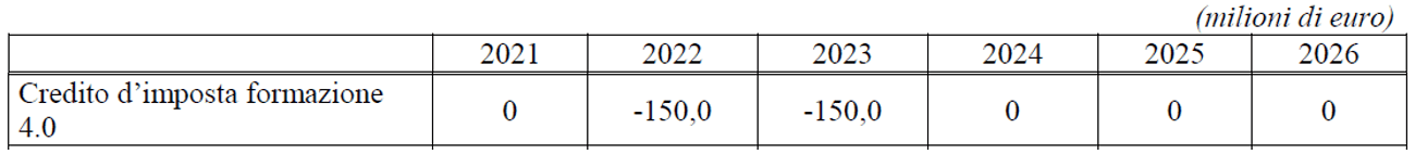 | Credito Formazione 4.0 – Periodi d’imposta 2020/2021/2022 | |||