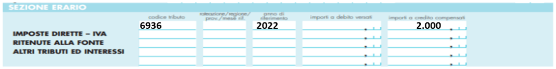- al rigo RU6 la quota annuale di credito spettante in misura “ridotta”, di cui al comma 1055 dell’articolo 1, L. 178/2020 (1/3 del 6%), compensata nel periodo d’imposta 2022;
