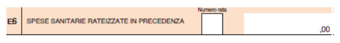 I contribuenti invece che nelle precedenti dichiarazioni dei redditi, avendo sostenuto spese sanitarie per un importo superiore a euro 15.493,71, hanno optato negli anni d’imposta 2013 e/o 2014 e/o 2015 per la rateizzazione di tali spese, devono riportare nella dichiarazione dei redditi, nel rigo E6 (o RP6 in caso di modello Redditi) gli importi di cui è stata chiesta la rateizzazione.