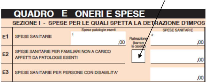 Il contribuente può avvalersi della rateizzazione di tali spese se l’importo complessivo, al lordo della franchigia di 129,11 euro, eccede 15.493,71 euro: sarà sufficiente barrare l’apposita casella mentre il calcolo della rateizzazione, e quindi della detrazione spettante, verrà eseguito da chi presta l’assistenza fiscale.