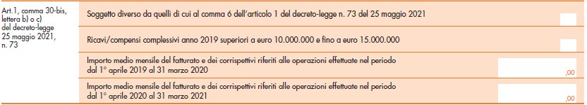 Per la richiesta del contributo Sostegni-bis va compilata la seguente Sezione dell’istanza: