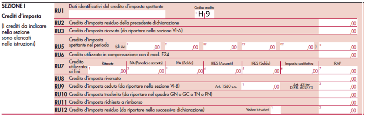 In particolare, va compilata la Sezione I del quadro RU dedicata ai Crediti d’imposta, indicando quale codice credito nel rigo RU1, il codice H9 – Sanificazione e acquisto dispositivi di protezione: