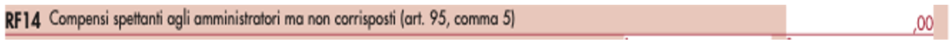 La società, al fine di indicare in dichiarazione dei redditi i compensi agli amministratori non erogati entro la fine dell’esercizio, deve inserire l’importo all’interno del rigo RF14, denominato “Compensi spettanti agli amministratori ma non corrisposti (art. 95, comma 5)”, quale variazione in aumento.