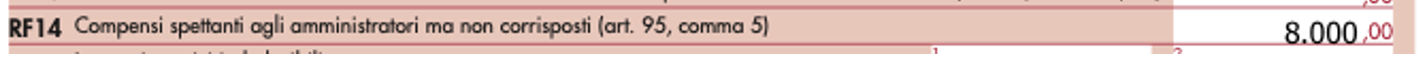 - il rigo RF14 deve riportare, quale variazione in aumento, l’importo di 8.000 euro, in quanto si tratta di compensi, di competenza del periodo di imposta, ma non corrisposti.