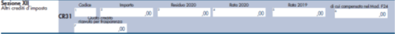 Nell’ambito del modello Redditi PF 2022 il credito d’imposta in esame va indicato nel quadro CR, Sezione XII, al rigo CR31. In particolare: