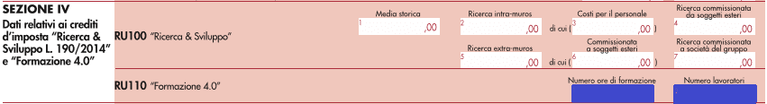 - rigo RU110 – colonna 2, il numero complessivo dei lavoratori dipendenti che hanno preso parte alle attività di formazione agevolabili, in qualità sia di discenti, sia di docenti o tutor, in tutte le attività di formazione 4.0 svolte nel periodo d’imposta.
