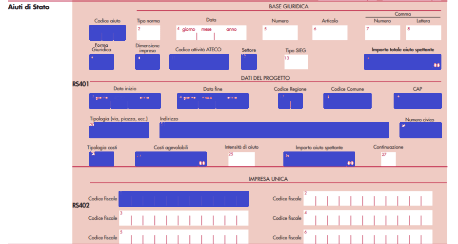 - quadro RS, prospetto “aiuti di Stato”.