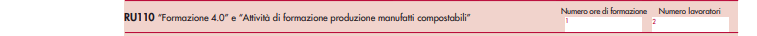 Analogamente al modello dichiarativo del periodo d’imposta 2019, al credito formazione 4.0 è dedicato un rigo (RU110) con indicazione dei seguenti dati:
