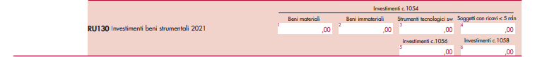 Al credito d’imposta per investimenti in beni strumentali nuovi realizzati nel 2020 e nel 2021 secondo la nuova normativa della Legge di Bilancio 2021 è dedicato il rigo RU130.