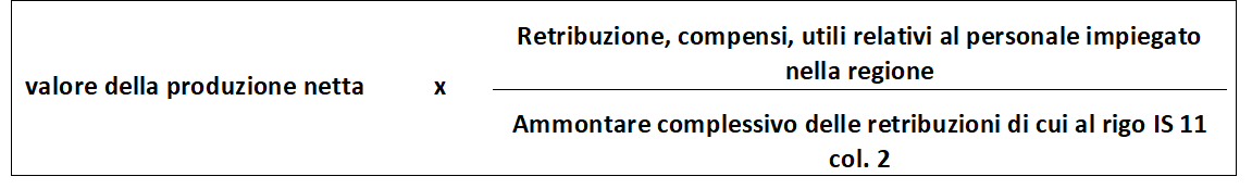 La ripartizione territoriale del valore della produzione (e quindi dell’Irap) va pertanto effettuata secondo la seguente formula: