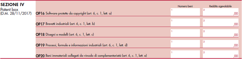 - è stato inserito un nuovo prospetto “Grandfathering – Opzione marchi d’impresa (Patent Box)” per i soggetti che, a partire dal terzo periodo d’imposta successivo a quello in corso al 31 dicembre 2014, hanno esercitato in dichiarazione l’opzione per il regime di “Patent box” e che devono comunicare per i marchi d’impresa i dati previsti dall’articolo 13 D.M. 28 novembre 2017.