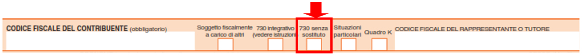 - nella sezione “Informazioni relative al contribuente” andrà indicata la lettera “A” nella casella “730 senza sostituto”;