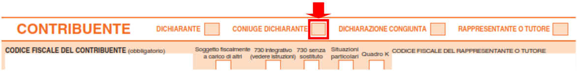 Nel modello del coniuge dichiarante deve essere barrata la casella “coniuge dichiarante”, mentre il riquadro “dati del sostituto d’imposta che effettuerà il conguaglio” non deve essere compilato.