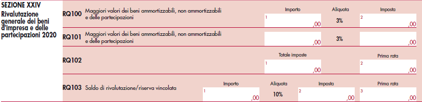 - la sezione XXIV per i soggetti che intendono avvalersi della “Rivalutazione generale dei beni d’impresa e delle partecipazioni” di cui all’articolo 110 D.L. 104/2020