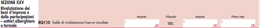 - la sezione XXV, per gestire la “Rivalutazione dei beni d’impresa e delle partecipazioni – settori alberghiero e termale” di cui all’articolo 6-bis D.L. 23/2020