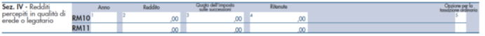 La Sezione IV del quadro RM (Redditi soggetti a tassazione separata e ad imposta sostitutiva, rivalutazione dei terreni) del modello Redditi PF 2022 è dedicata ai redditi percepiti in qualità di erede e legatario.