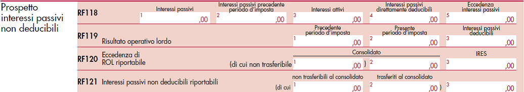 - riportare gli eventuali interessi indeducibili come variazione in aumento a rigo RF 15;