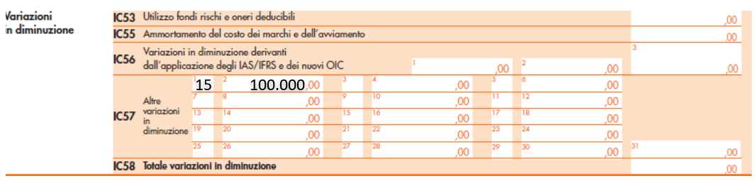 | variazione in diminuzione mod. Redditi | 100.000 | ||||||