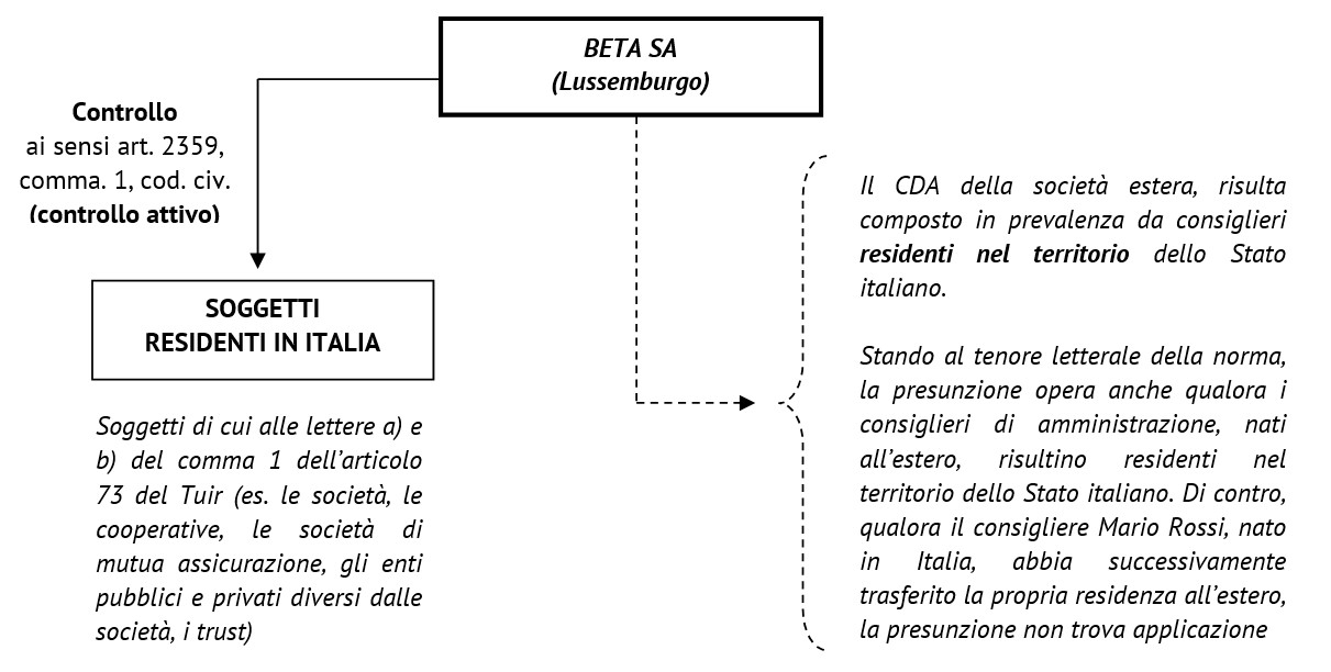 Tavola n. 2: seconda fattispecie presuntiva (controllo attivo e maggioranza dei consiglieri residenti)