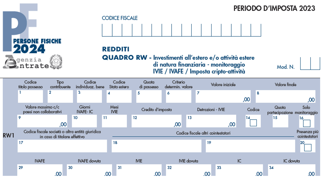 Diverse sono le novità introdotte al quadro RW del modello Redditi PF 2024. Innanzitutto, il quadro cambia fisionomia dopo una decina di anni. Proponiamo per comodità il nuovo prospetto.