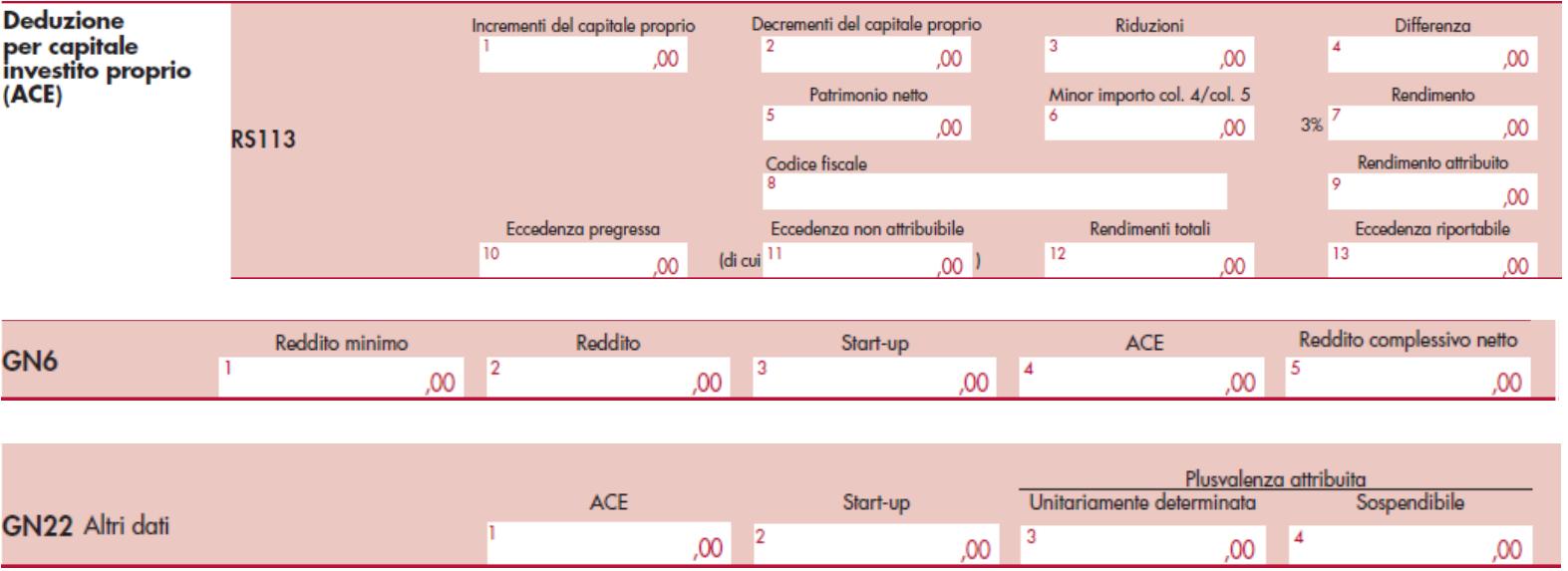 Sotto il profilo pratico, l’ammontare dell’ACE indicata nel rigo RS113 colonna 12 del modello UNICO 2014 SC della singola società che aderisce al consolidato, andrà indicata nel rigo GN6 colonna 4 fino a concorrenza del reddito della stessa; l’eventuale eccedenza andrà riportata a colonna 1 del rigo GN22, quale ammontare utilizzabile a scomputo del reddito complessivo netto di gruppo. L’importo che non trova capienza in tale ammontare andrà indicato nella colonna 13 del rigo RS 113.