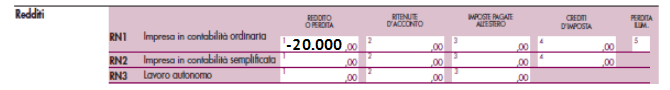 Si ipotizzi, inoltre, che tale società abbia generato una perdita che, attribuita per trasparenza, sia pari a 20.000 euro.