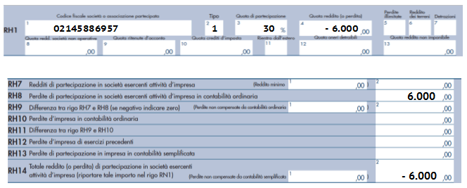 Tale perdita andrà indicata in sede di dichiarazione nel rigo RH8 del Modello Redditi PF del socio.