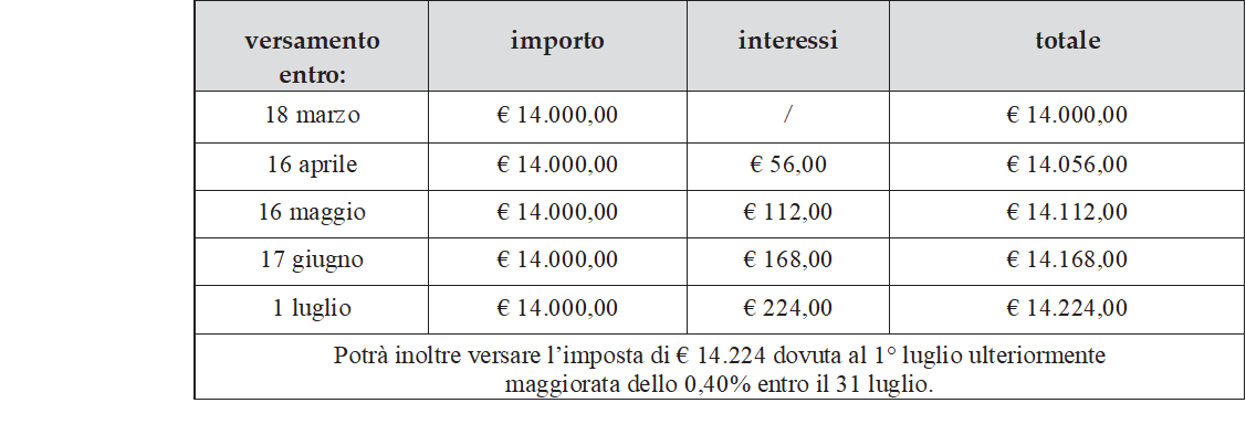 - entro il 18 marzo → senza alcuna maggiorazione a titolo di interessi;